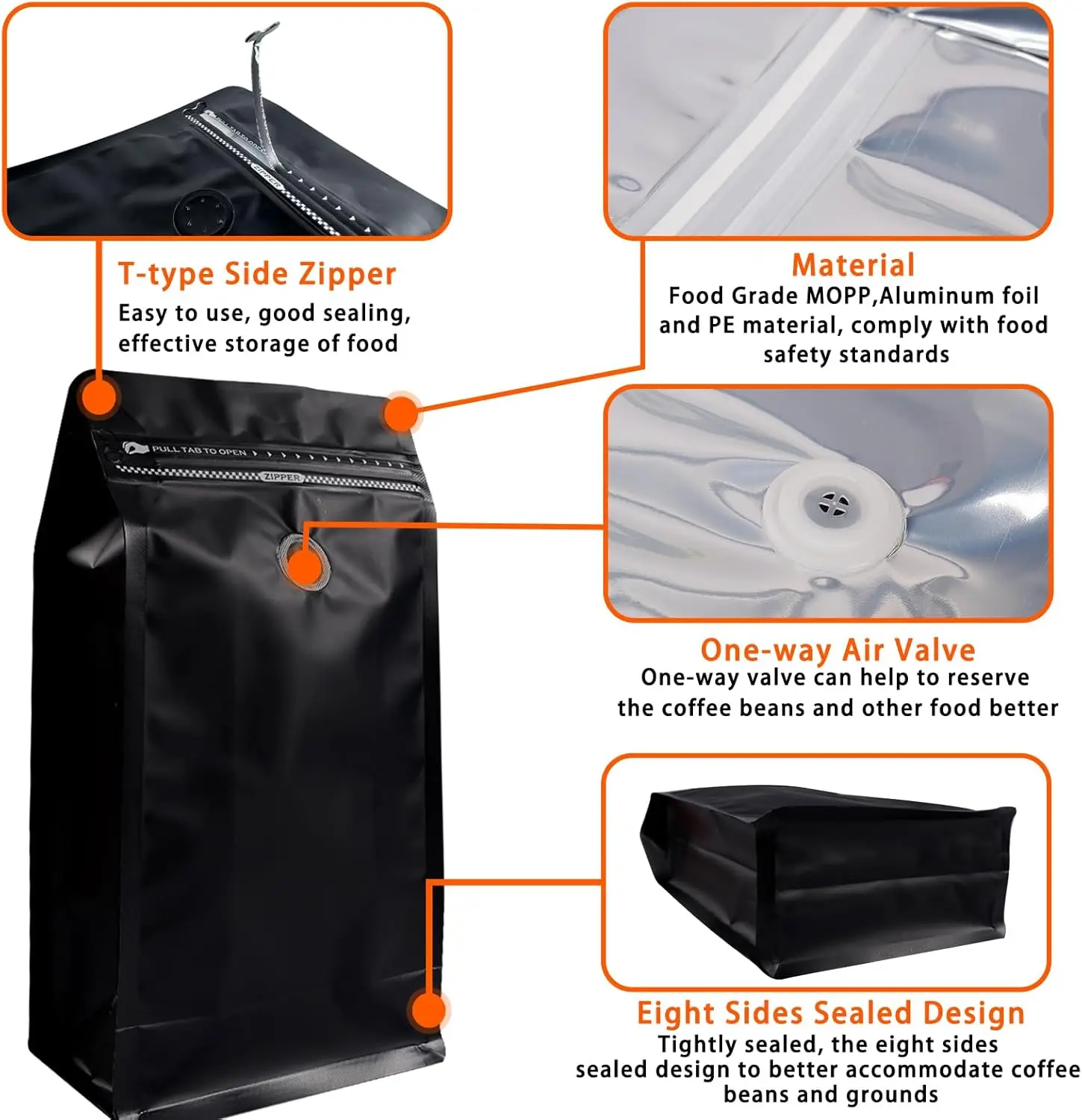 Hang Hole, Tear Notch,Tamper-Evident Seal, Child Resistant, Zipper etc.
