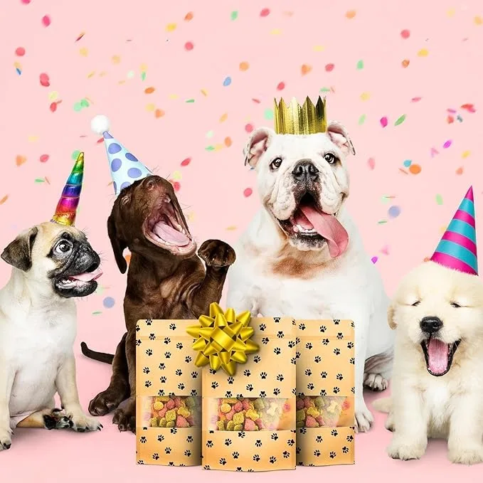 High quality custom biodegradable kraft paper bags eco friendly smell proof resealable freeze dried dog treats stand up pouch