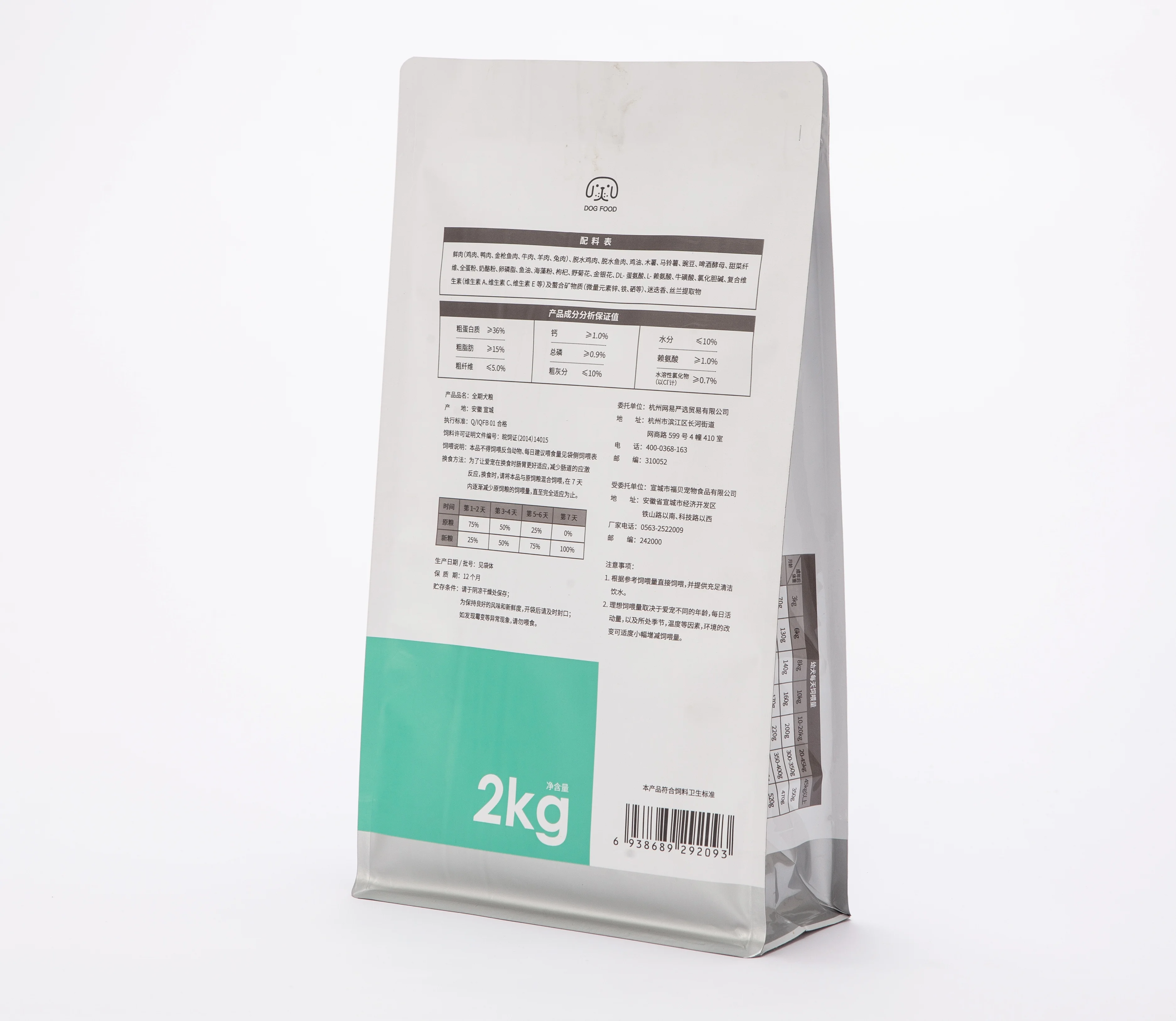 Quad Seal Pet Dog Food Packaging Bag