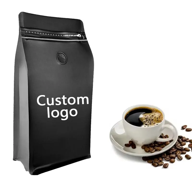 Wholesale 16oz Black Gray Coffee Beans Storage Bag Heat Seal Zipper Valve with Gravure Printing for Home Use